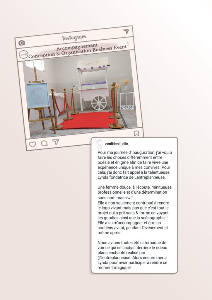 Prête à embarquer tes clientes dans ton Univers de Marque ! L'Agence L'Entreplanneuse met à ta disposition toute son expertise pour t’accompagner dans la conception, l'organisation et la réalisation de ton Business Event.